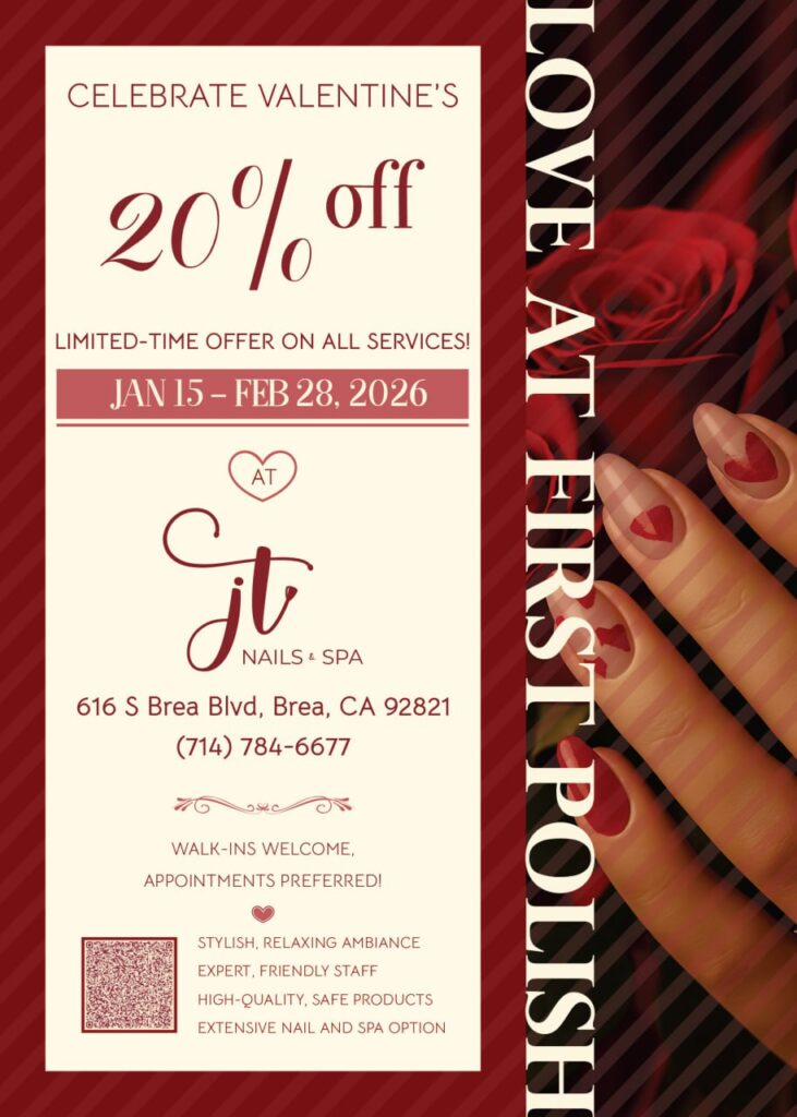 Located in the heart of Brea, California, JT Nails & Spa blends relaxation and beauty in perfect harmony.